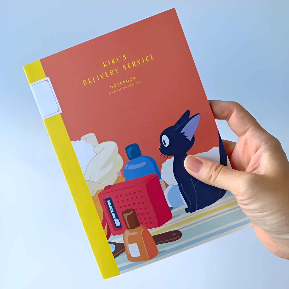 Elevate your note-taking experience with the Studio Ghibli Original Kiki's Delivery Service B6 Notebook, crafted to perfection in Japan! Immerse yourself in the world of Jiji cat as it playfully lounges amidst items, gracing both the cover and every corner of the inner pages. With versatile grid lines, this notebook is your ideal canvas for any subject. Its lightweight, softcover design ensures you can carry a touch of Studio Ghibli magic wherever you go!